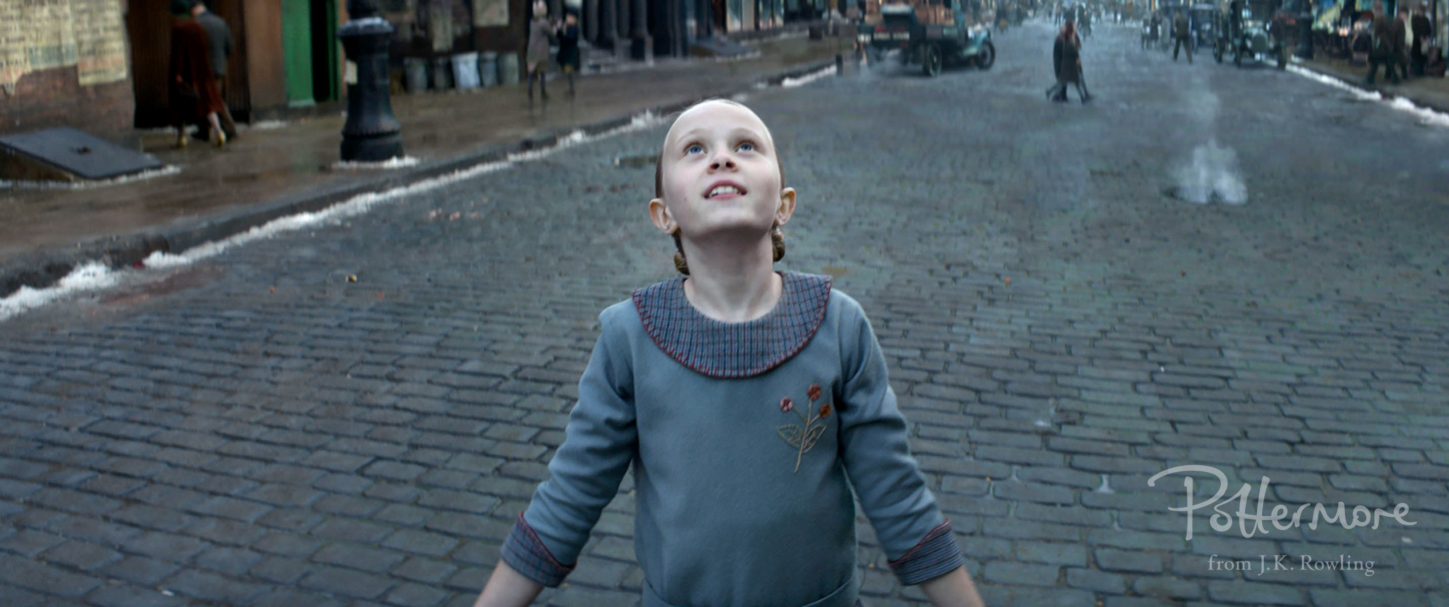 [01:12] Here we have the Goldstein Sisters, Tina and Queenie, revealing something to Newt and Jacob Kowalski, the first majorMuggleNo-Maj character. I don't think it's the American equivalent of Diagon Alley, since we can see a bouncer at the other side of the door. Plus, Tina wears the same dress as in 00:26 so I'm gonna assume that this is a wizarding speakeasy.