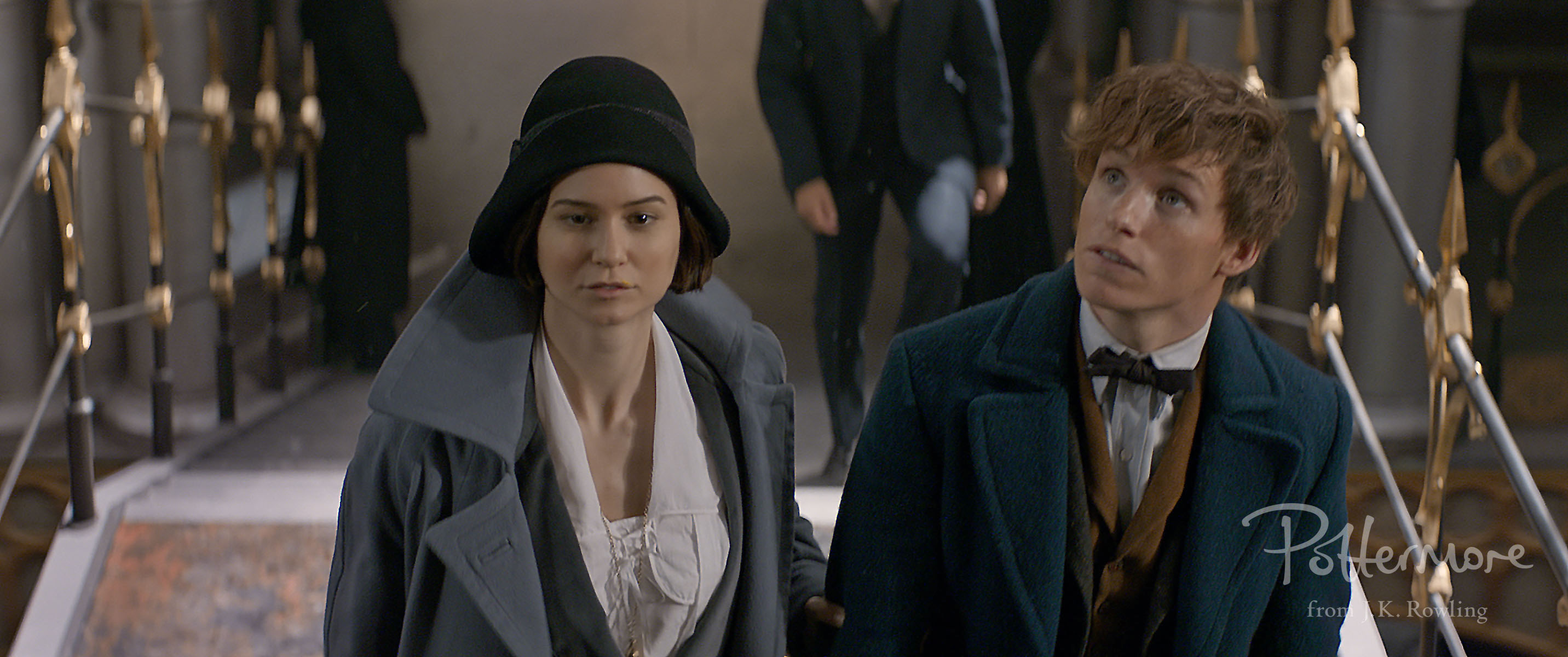[01:09] Tina is dragging Newt somewhere with haste. My guess? All the beasts from Newt's suitacse had escaped already, and the authorities demanded to get Scamander in front ofThe Beloved Supreme LeaderMadam President.